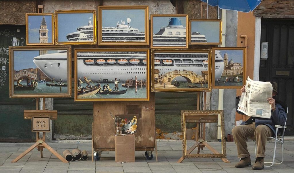 Il tema dell’opera si inseriva nel dibattito sulla tragedia degli sbarchi clandestini e sulla politica dei porti chiusi allora in voga, temi cari all’artista. Oltre a questo murales, Banksy realizzò in contemporanea un’altra performance provocatoria dal titolo “Venice in oil”: installò una bancarella in Piazza San Marco vendendo quadri che, una volta assemblati, formavano l’immagine di una grande nave da crociera tra le gondole veneziane, una denuncia all’impatto del turismo di massa.
