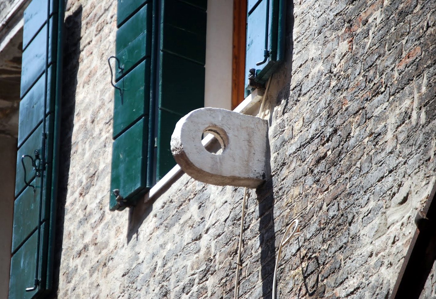 Realizzate in pietra d’Istria, sporgono dal muro per circa trenta centimetri, con un foro centrale di una decina di centimetri di diametro.