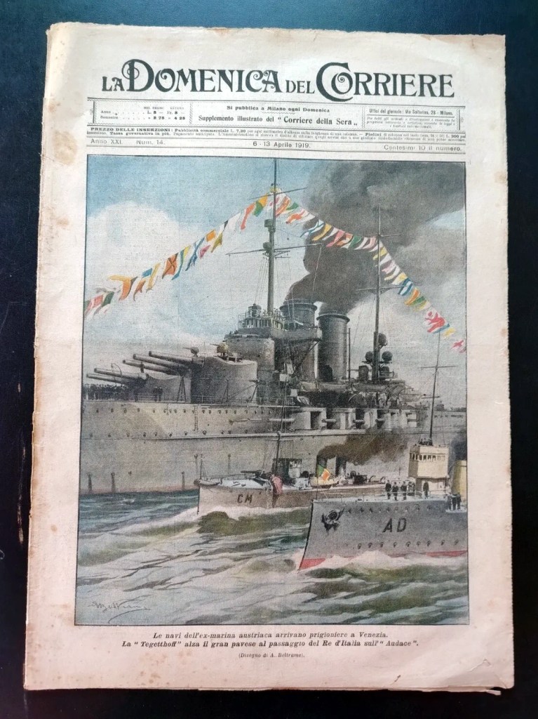 La prima appartiene alla SMS Viribus Unitis, nave ammiraglia della flotta austro-ungarica. Il suo destino cambiò il 1° novembre 1918, quando gli ufficiali italiani Raffaele Rossetti e Raffaele Paolucci, partiti da Venezia, riuscirono a penetrare nel porto di Pola a bordo di una “mignatta” (una torpedine semovente ideata dallo stesso Rossetti) e a piazzare una carica esplosiva sotto lo scafo. La nave affondò in appena dieci minuti: uno degli episodi più audaci e ingegnosi della guerra navale italiana.