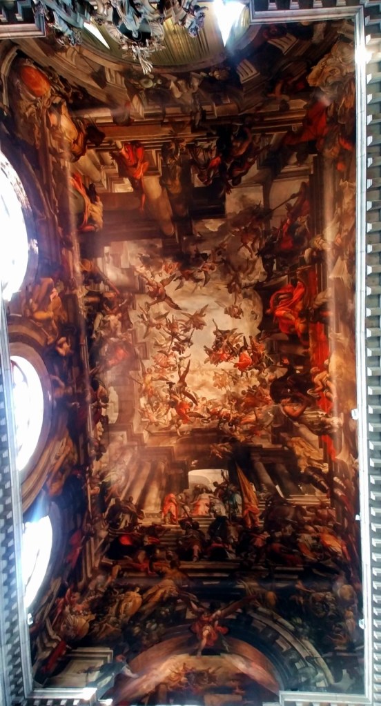 Si tratta di ben 40 tele unite tra loro, che formano un’opera monumentale di 443 metri quadrati: Il Martirio e la Gloria di San Pantaleone, episodio avvenuto nel 305. A realizzarla fu il maestro veneziano Giovanni Antonio Fumiani, che vi dedicò 24 anni della sua vita, dal 1680 al 1704.