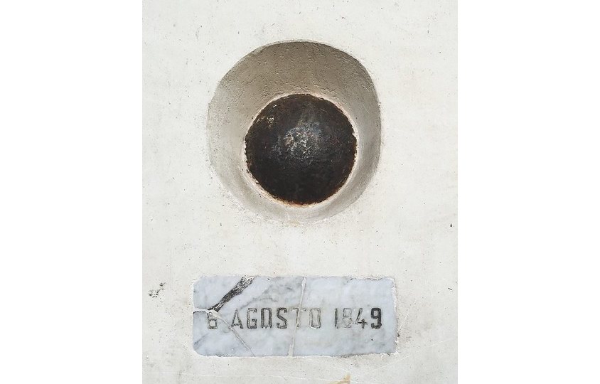 Uno degli episodi più emblematici avvenne il 6 agosto 1849, quando un proiettile sfondò la cupola della chiesa di San Nicola da Tolentino (nota ai veneziani come I Tolentini) e cadde proprio davanti all’altare maggiore, senza provocare vittime. A memoria dell’evento, la palla fu incastonata nella facciata della chiesa, sotto una semplice targa di marmo con la data: “6 AGOSTO 1849”.