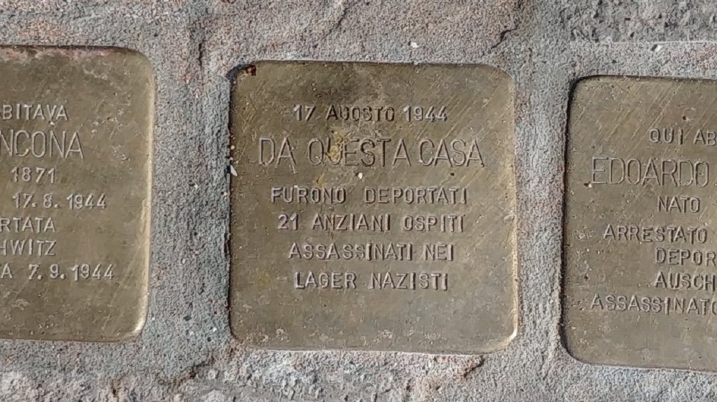Quest’ultima è tristemente nota per essere l’abitazione con il maggior numero di deportati: il 17 agosto 1944, 21 anziani ospiti furono barbaramente prelevati e nessuno di loro fece mai ritorno. La pietra collettiva posta in loro memoria recita: