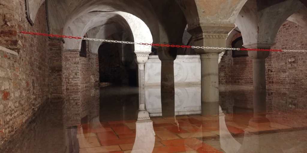 Con il progressivo innalzamento del livello del mare, la cripta è oggi quasi sempre allagata. Quando l’acqua è alta, la si può osservare soltanto dagli ultimi gradini delle due scalinate che vi conducono. Se invece il livello è più basso, è possibile inoltrarsi al suo interno grazie a un camminamento rialzato.