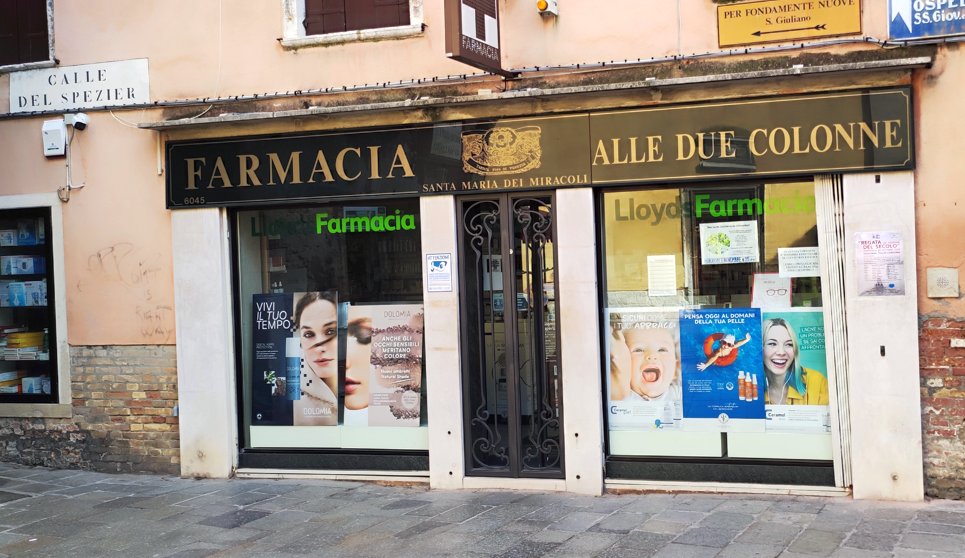 Un dettaglio che spesso passa inosservato, ma che racchiude una delle pagine più curiose e affascinanti della storia farmaceutica veneziana. Una piccola impronta circolare, visibile su un masegno alla sinistra dell’ingresso della Farmacia “Alle Due Colonne”, è ciò che resta delle innumerevoli volte in cui, in passato, vi fu appoggiato il grande mortaio in bronzo utilizzato per la preparazione della Teriaca.