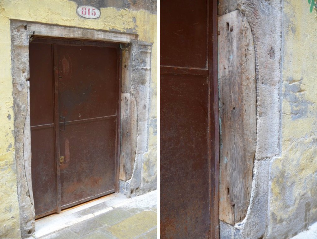 A conferma di questa ipotesi, a soli 35 metri in linea d’aria si trova un’altra porta con una conformazione similare: due casi unici, senza riscontro in nessun’altra parte della città. Non è chiaro se questi spazi fossero destinati a botti vuote o piene, ma è certo che i bottai potevano vendere le loro botti solo il sabato, a Rialto o a San Marco. Da qui nasceva l’esigenza di un deposito dove accumularle, comprese quelle più grandi. Allo stesso modo, le botti piene necessitavano di un luogo sicuro in attesa di essere vendute o conservate come scorte da parte degli acquirenti.