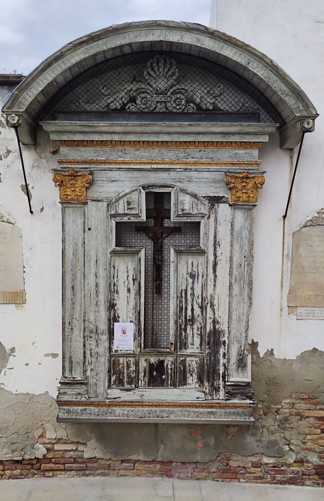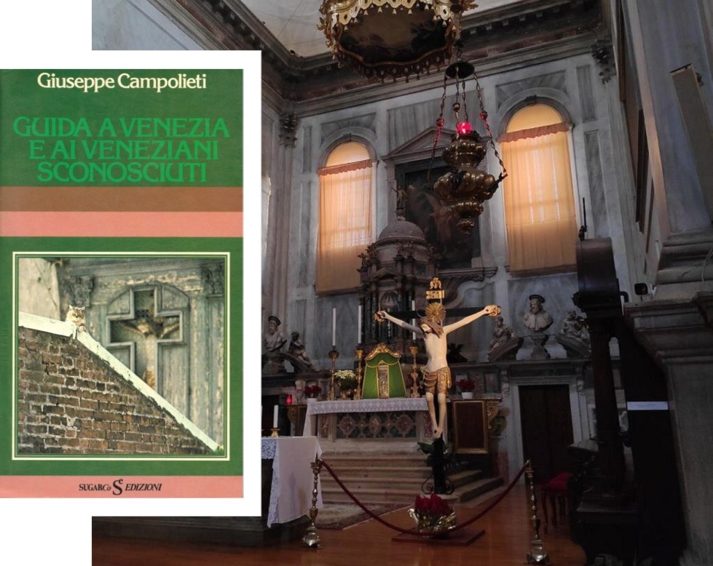 Ora: era ancora in restauro o era stato chiuso in un posto sicuro? Niente di tutto ciò. Dopo successive ricerche su fonti parrocchiali, trovai finalmente l’informazione che cercavo: il crocifisso non si era allontanato molto, era conservato all’interno della Chiesa del Anzolo Rafael.