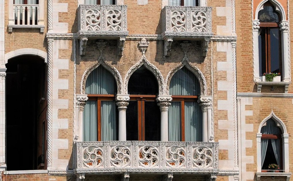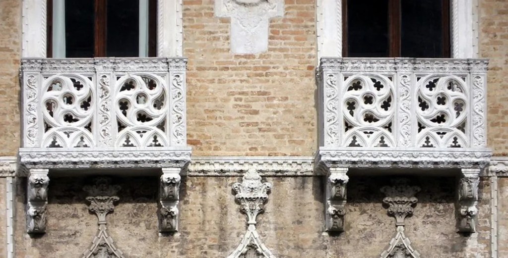 Eretto attorno al 1475, il palazzo è uno dei più raffinati esempi di gotico fiorito veneziano. Ma la sua vera anima si rivela nelle balconate: trafori che, da lontano, sembrano eliche in movimento. In realtà sono gocce inscritte in cerchi, ma l’occhio le percepisce come rotazioni, come un respiro che anima la pietra.