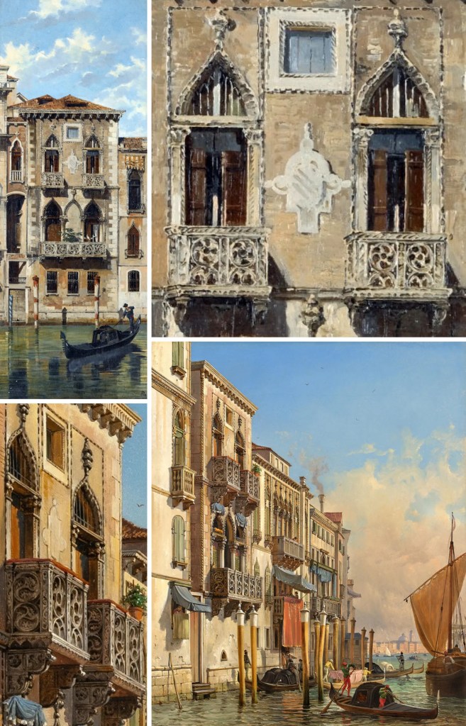 in basso: “Palazzo Contarini a Venezia (Casa di Desdemona)” di Friedrich Nerly “il Vecchio” (1860÷1880)