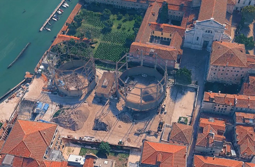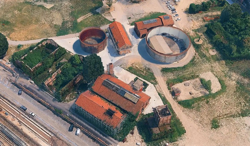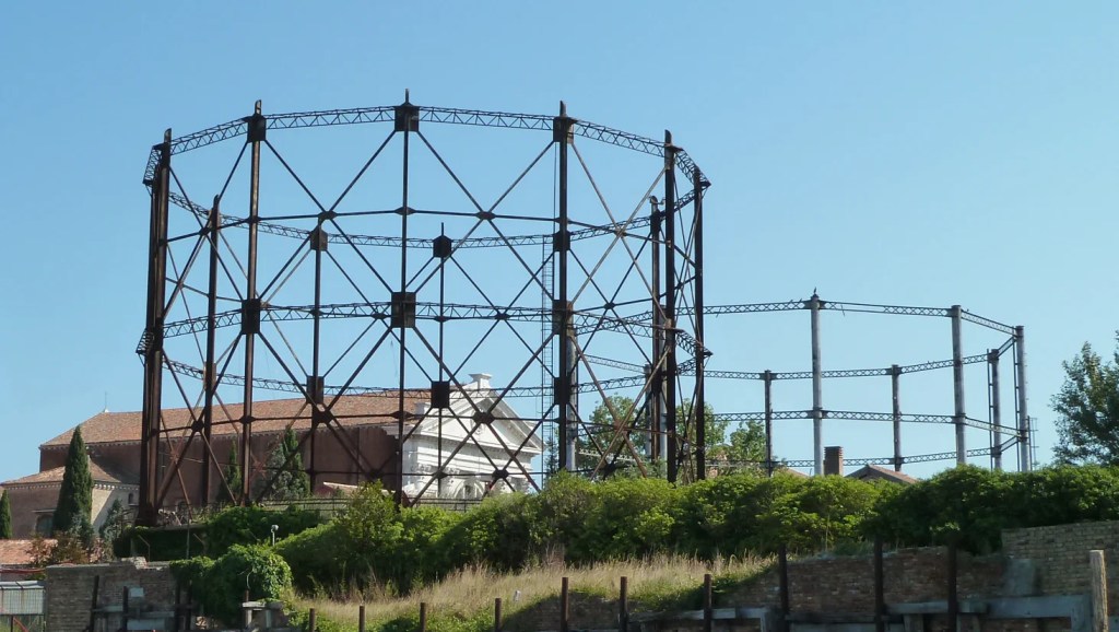 Nel cuore del sestiere di Castello, a pochi passi dalla monumentale Chiesa di San Francesco della Vigna, si stagliano due grandi strutture cilindriche in metallo, oggi segnate dal tempo e dalla ruggine. Sono le due gabbie superstiti dei sei gasometri che, nel corso degli anni, furono edificati in quest’area per potenziare lo stoccaggio del “gas di città”. Costruiti nel 1882 (quello verso il campo) e nel 1926 (quello verso la laguna), rappresentano un raro e affascinante esempio di archeologia industriale incastonato nel delicato tessuto urbano lagunare.
