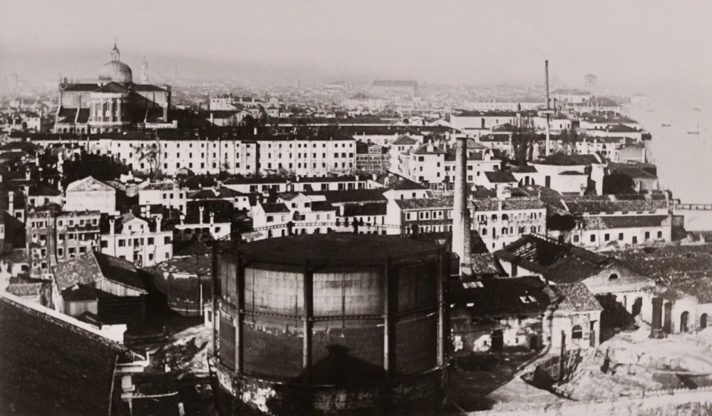 La rete veneziana, avviata nel 1839 tra le prime in Europa, nacque per alimentare in modo più moderno le circa 2.300 lampade dell’illuminazione pubblica, fino ad allora alimentate a olio grazie al faticoso lavoro di circa 150 “impizadori”, che ne curavano accensione e manutenzione. Col tempo, il gas entrò anche nelle cucine e negli impianti di riscaldamento, rendendo indispensabili i gasometri di San Francesco della Vigna, assieme a quelli del nuovo insediamento degli anni Trenta di Santa Marta nel sestiere di Dorsoduro, fino al 1972, anno in cui furono definitivamente dismessi a favore del metano della rete nazionale.