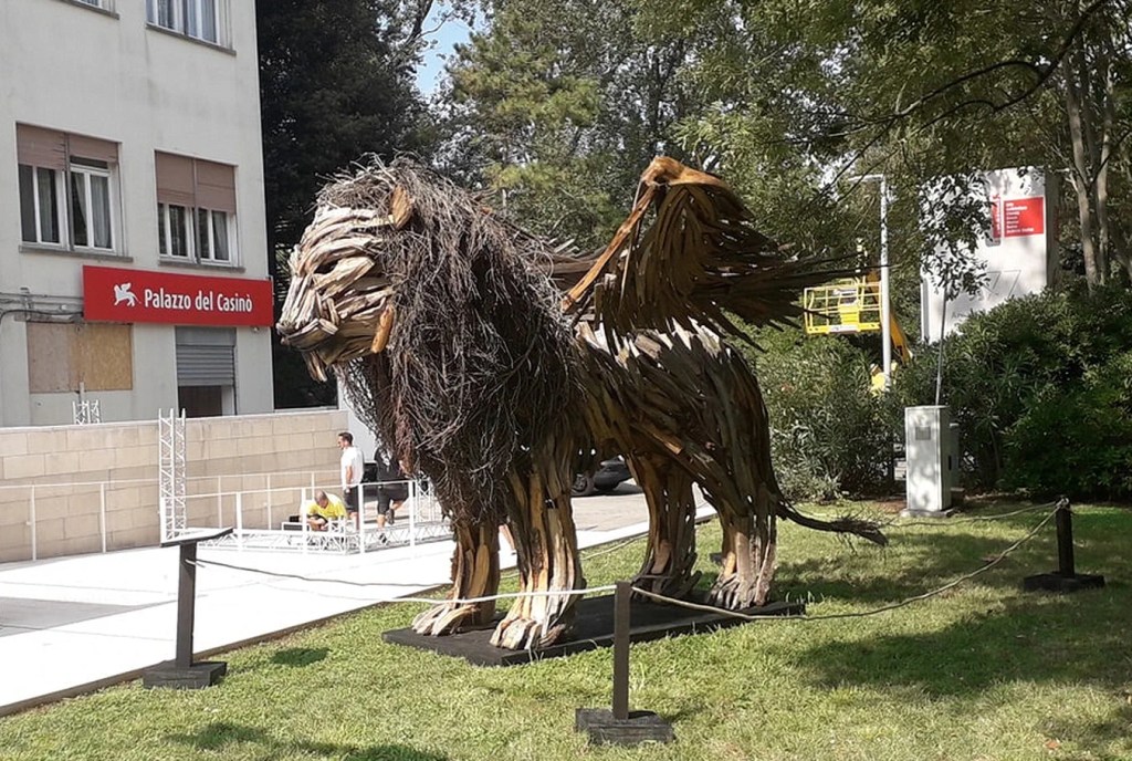 La prima apparizione risale al settembre 2020, quando il “Leone alato di Vaia” (3 metri d’altezza per 4 di lunghezza) fu scelto come simbolo di resilienza per la 77ª Mostra Internazionale d’Arte Cinematografica di Venezia. Realizzato nell’entroterra vicentino e trasportato su un pontone fino al Lido, trovò dimora per la durata della Mostra nel giardino dell’ex Casinò. Oggi, quell’opera ha la sua casa definitiva a Jesolo, e non va confusa con il “fratello maggiore”: l’immenso “Leone alato” (7 metri per 10) che svetta a Tarzo, in località Fratta, a ridosso dell’incantevole Lago di Lago.
